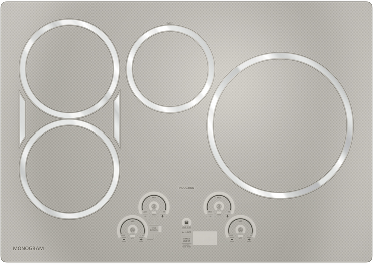 Monogram® 30" Induction Cooktop-Silver with four burners, glide touch controls and stainless steel clad aluminum griddleRead More