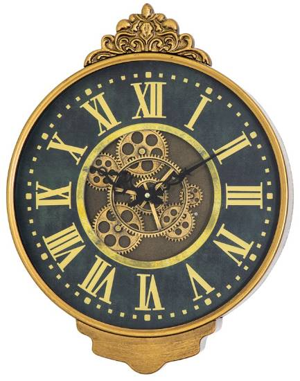 This wall clocks metal frame which is finished in Gold is perfectly complimented by the dark face of the clock, allowing for the Roman numeral to stand out. Moving gears add visual interest and a sense of the ever-present dynamic motion of time.Read More